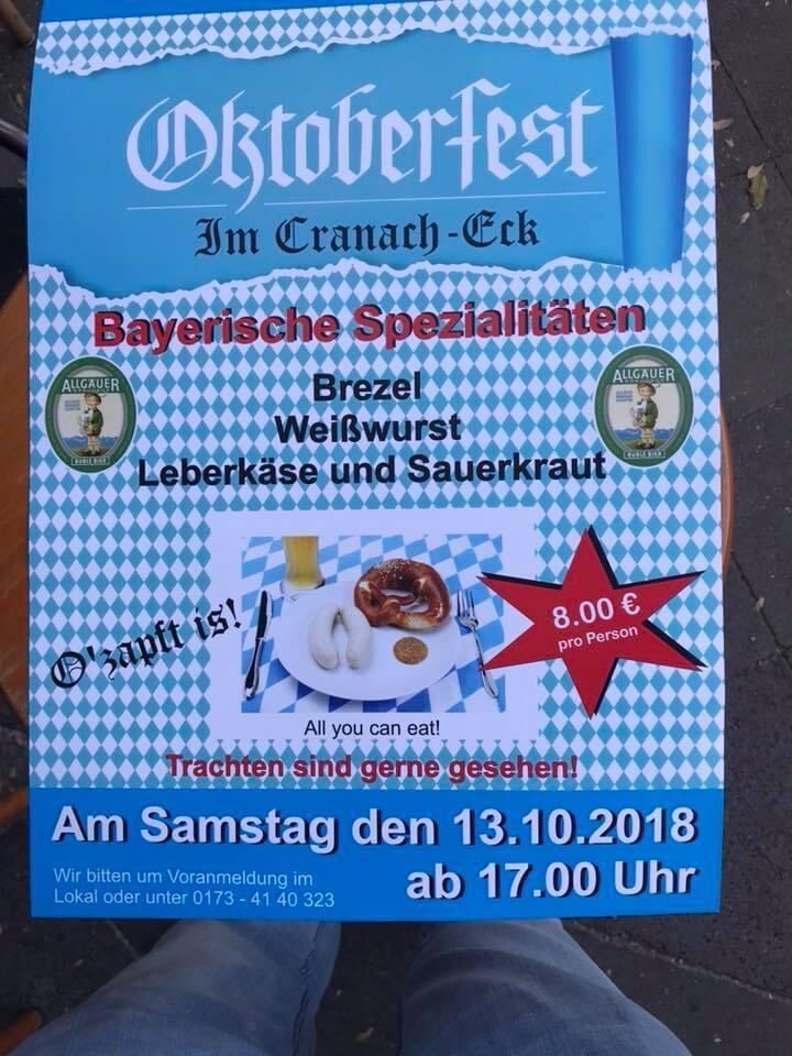 Regelmäßig veranstalten wir im Cranach-Eck Events. Ob Weinprobe, Quizabende, Mottopartys oder Frühstücksbuffets. Schauen Sie selbst!